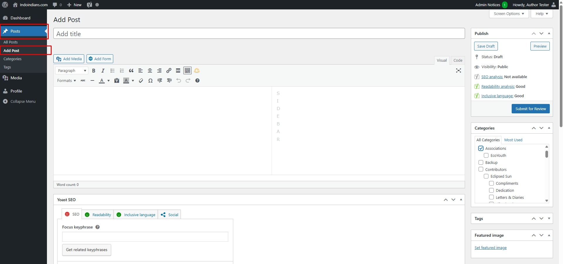 - You (as an Author) cannot add new categories.