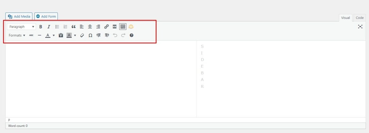 Enter your post content in the large editor area in the middle of the page:– Write your article content.