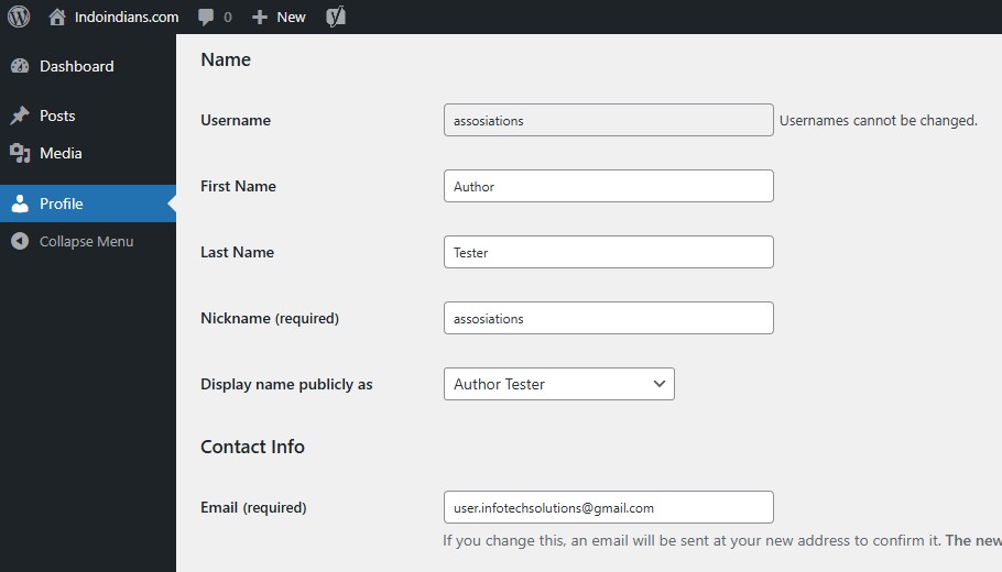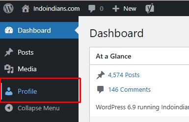 - After you are on the admin dashboard, click the “Profile” menu in the sidebar.